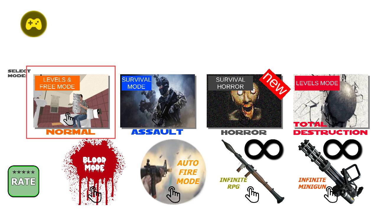 1、进入游戏可选择NORMAL、ASSAULT等多种模式,选定后开启拆家关卡,不同模式带来差异化解压体验,开启疯狂破坏之旅。
