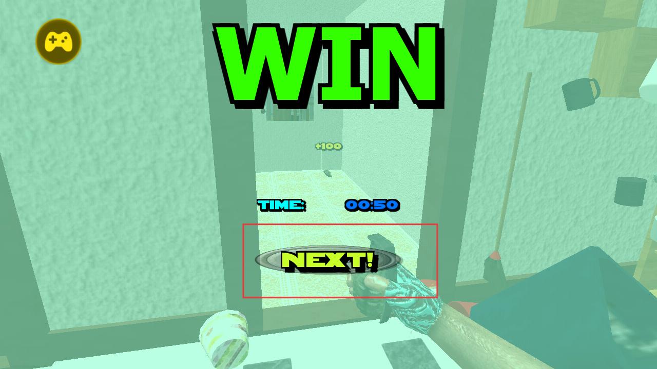 4、完成关卡后出现WIN界面,点击NEXT按钮进入下一关,持续挑战更复杂的建筑场景,享受不断拆家的解压乐趣。