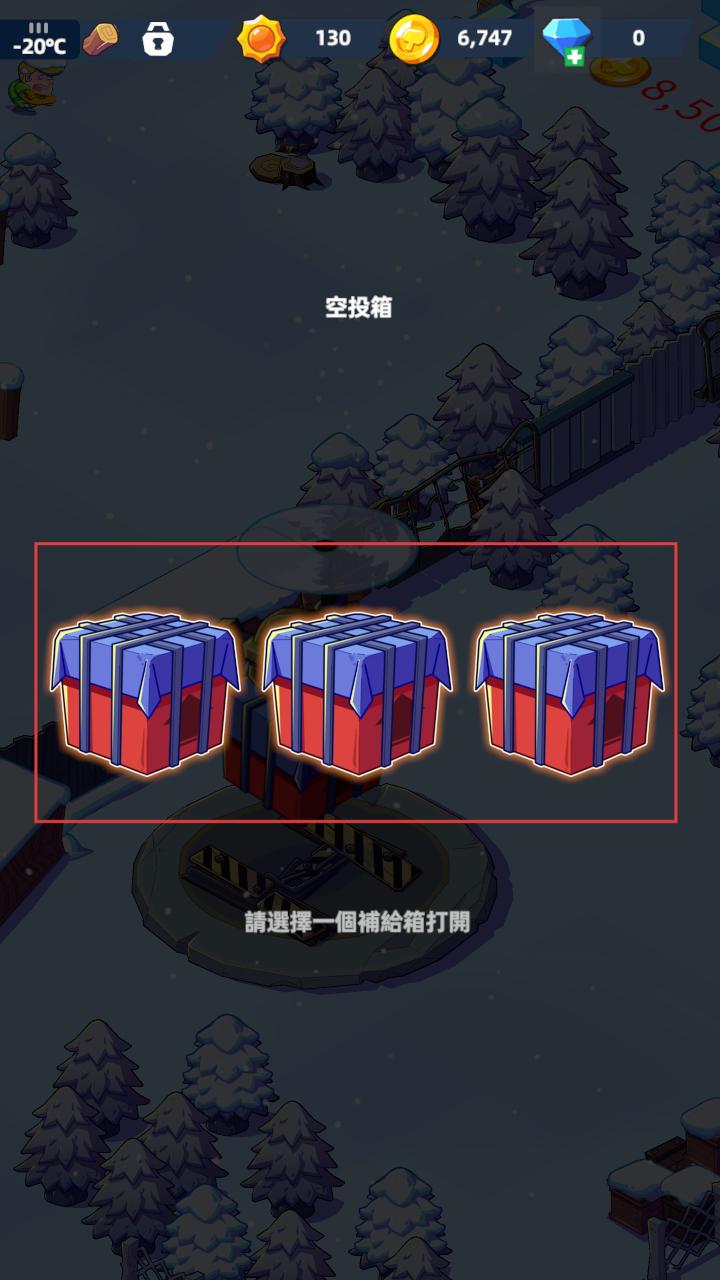1、游戏内会出现空投箱装置,点击后进入补给箱选择界面,可从中获取金币、道具等资源,为避难所建设和幸存者生存提供助力。