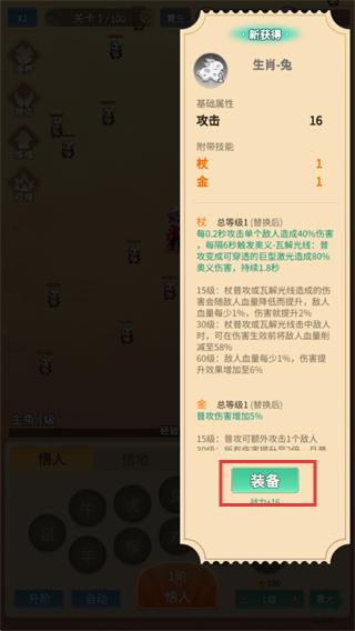 3、获得生肖装备后,可查看其基础属性和附带技能,点击装备按钮,为角色配备生肖装备,提升战力以便更好战斗。