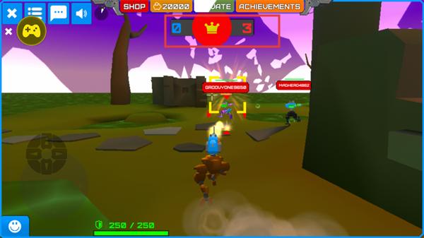 3、加入蓝队后,在战场中移动,收集道具,同时攻击敌方机甲,注意躲避敌人的攻击,为团队争夺战场优势。