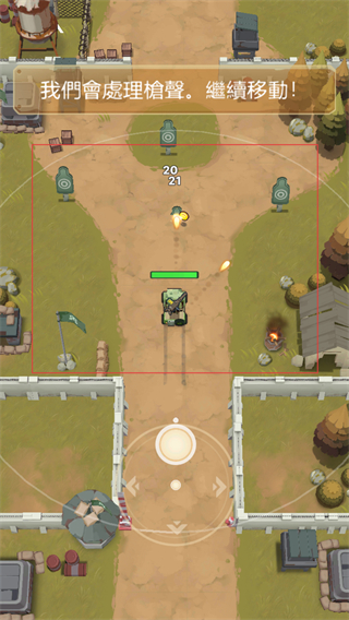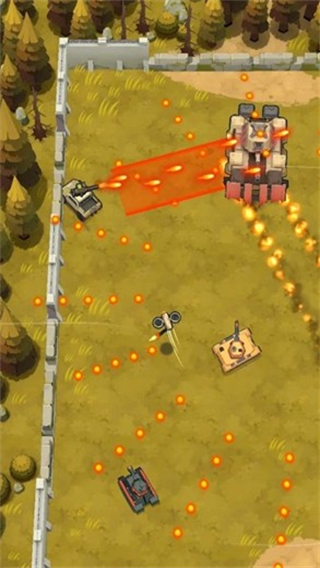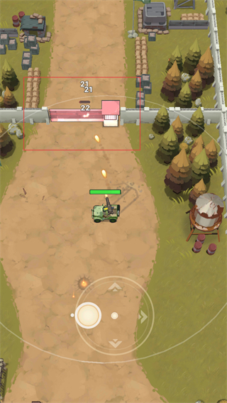 1、操作操控杆控制战车移动,避开炮塔攻击的同时前进,推进关卡流程。