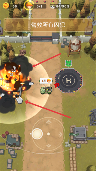 2、吉普车拥有火力升级系统,每次成功解救工程师人质都会提升炮弹威力。特定人质能提供临时护盾或全屏炸弹的特殊能力。
