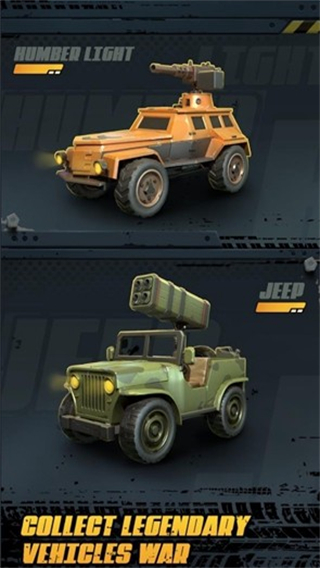 2、操控战车在场景中移动,撞击敌人完成消灭,同时收集场景中的道具资源。
