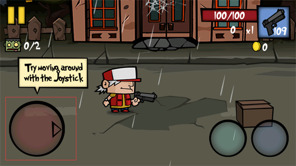 2、拖动左侧的Joystick控制幸存者移动,按照提示调整角色位置,熟悉移动操作以便应对后续的僵尸威胁。