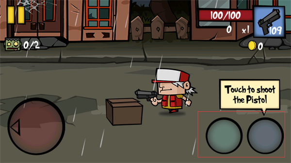 3、点击右侧的射击按钮使用Pistol开火,完成射击操作的练习,为对抗即将出现的僵尸做战斗准备。