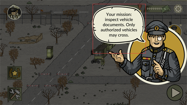 4、查看任务提示了解职责,后续需检查车辆证件,仅允许合法授权的车辆通过边境。