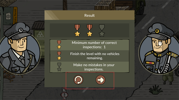 1、点击关卡选择界面中的数字1,进入第一关的边境检查场景,开启对应的安检任务。
