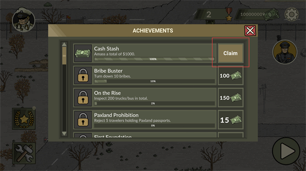 4、进入成就界面找到已完成的Cash Stash成就,点击Claim按钮,领取对应的钱币奖励。