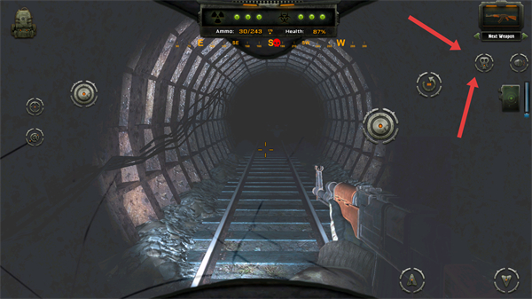 4、点击右侧的武器切换按钮,更换当前装备的武器,以便应对后续不同类型的威胁。