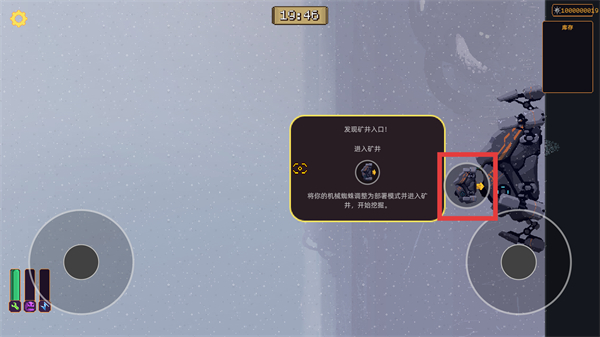 3、点击进入矿井选项,操控机械蜘蛛移动到矿井区域,解锁新的资源采集区域并推进探险进度。