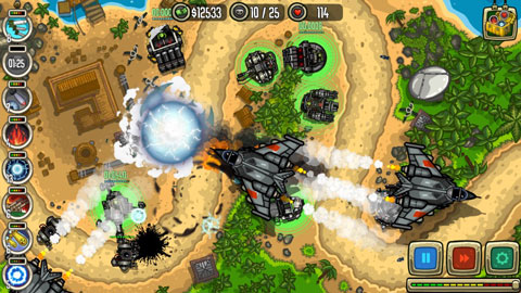 3、灵活使用炸弹空袭、电磁脉冲、核导弹等辅助道具,在关键时刻扭转战局,稳定防线并击退敌军。