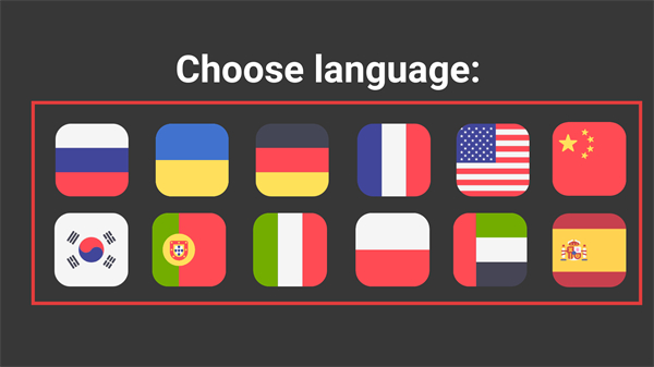 2、点击语言选择界面里的中国国旗图标,将游戏显示语言切换为中文,完成语言设置后返回主界面。