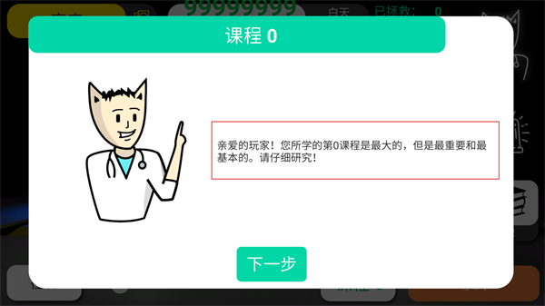 4、阅读课程0的中文提示内容后,点击下一步按钮,进入后续的医疗基础课程学习,掌握相关操作知识。