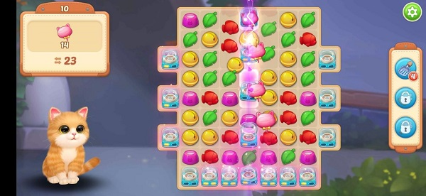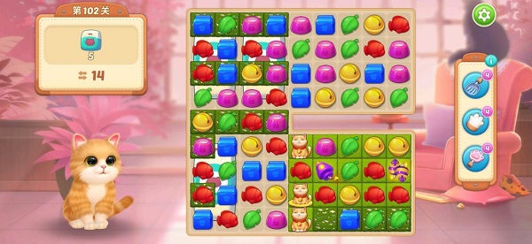 3、融合三消与养成玩法,消除闯关获取资源即可装扮猫咪家园、解锁互动道具,玩法维度更丰富。