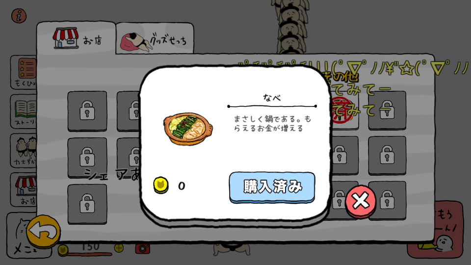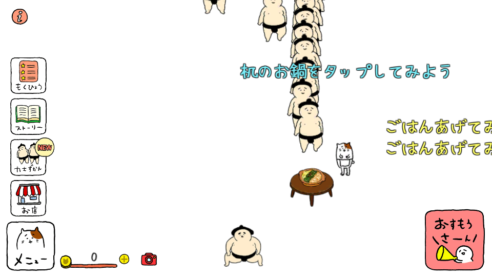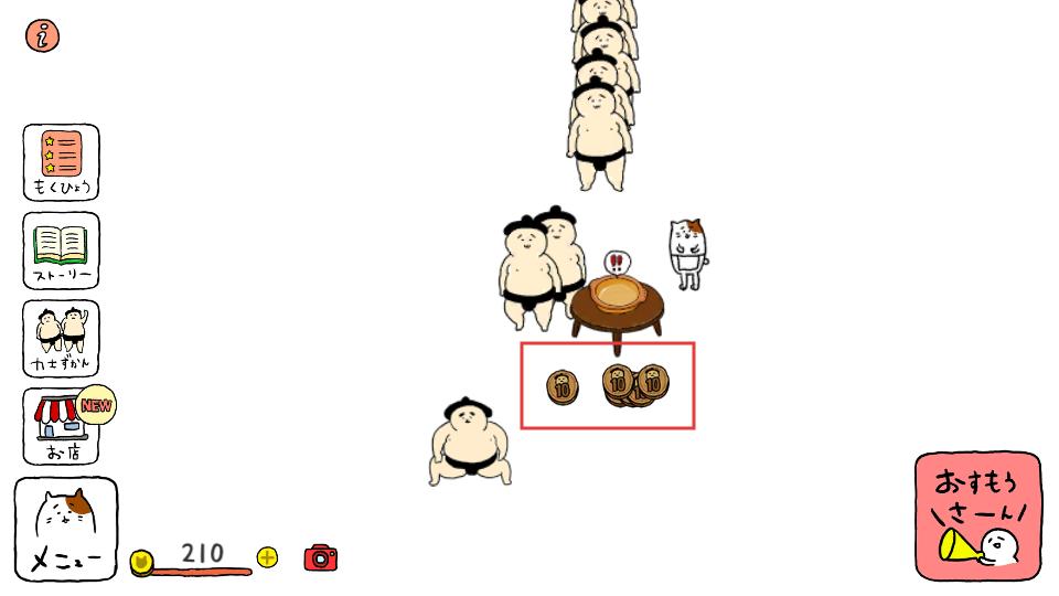 3、相扑选手用餐后会掉落金币,收集这些金币,积攒到一定数量,就能为后续解锁新物品等操作做准备。