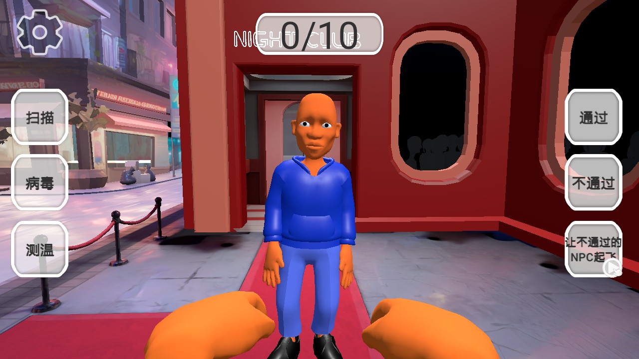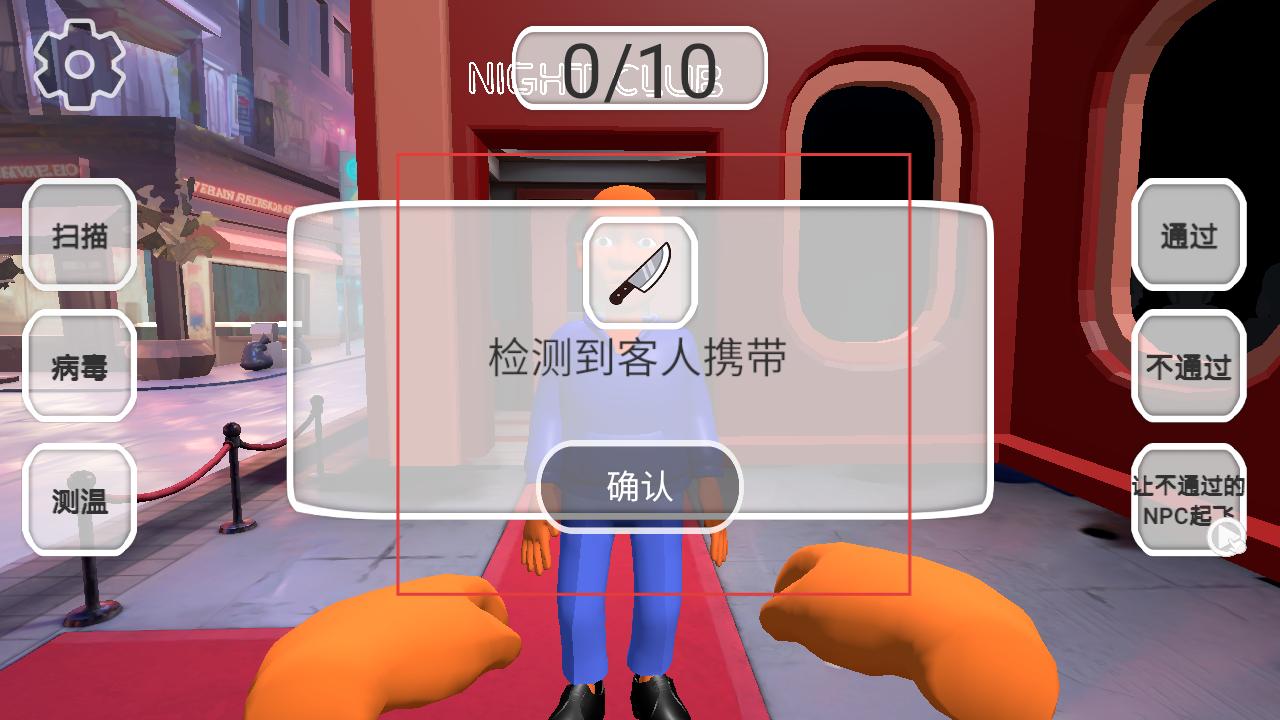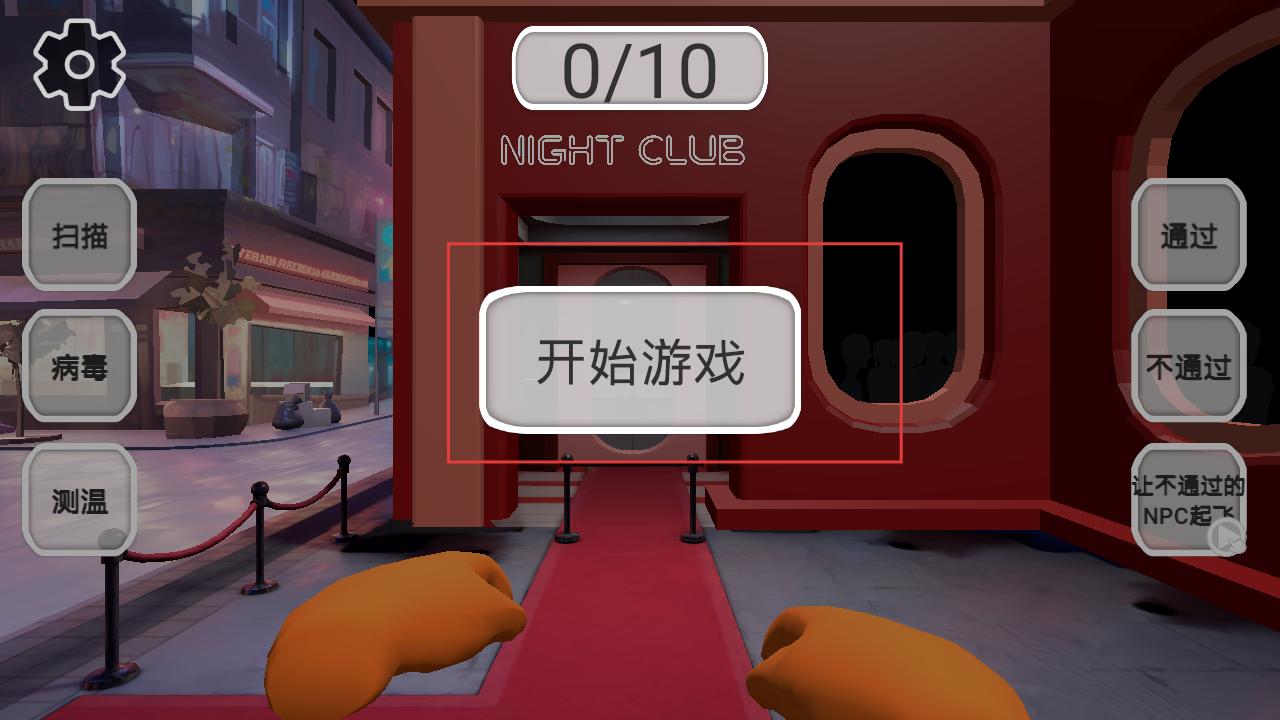 1、进入游戏,点击开始游戏,开启在夜店当保安、进行安检工作的体验,准备检查进入的人员。
