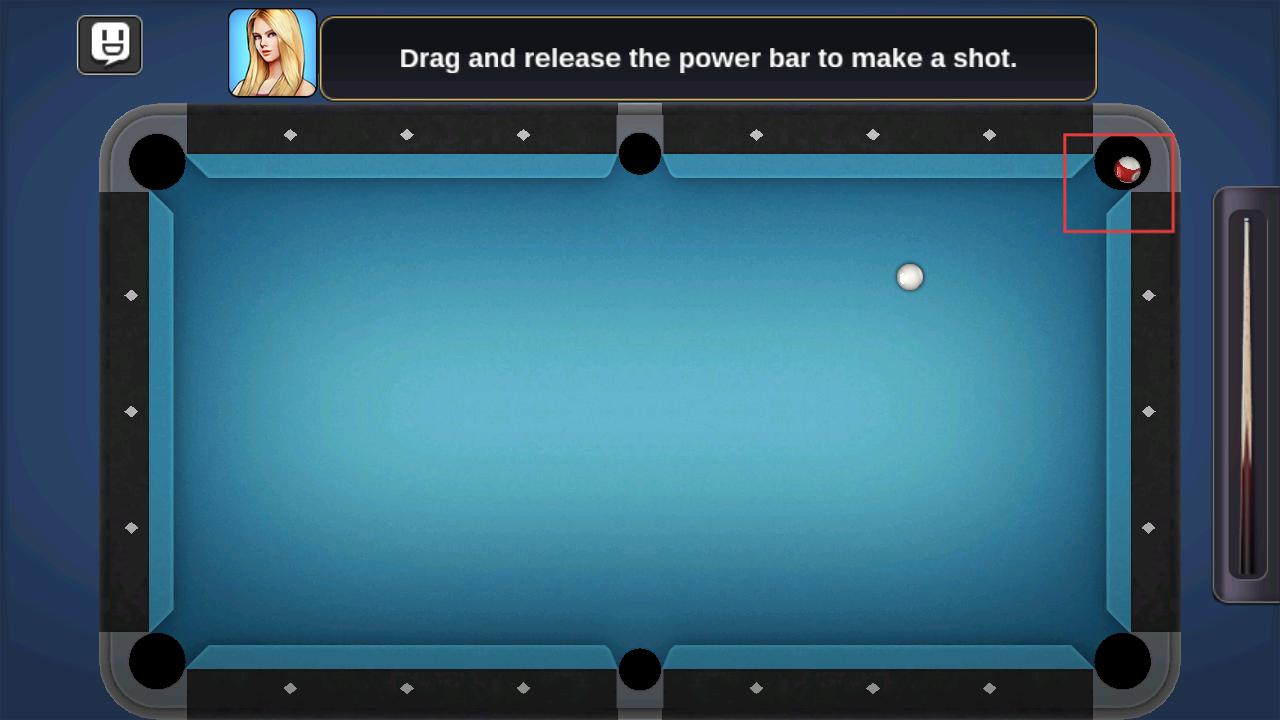 3、击球后观察球的运动轨迹,尝试让球顺利落入球袋,完成击球得分操作。
