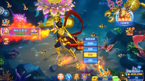 2、倍率选择:低倍炮捕小鱼攒金币,BOSS或黄金鱼群出现时切换高倍炮,实现收益最大化。