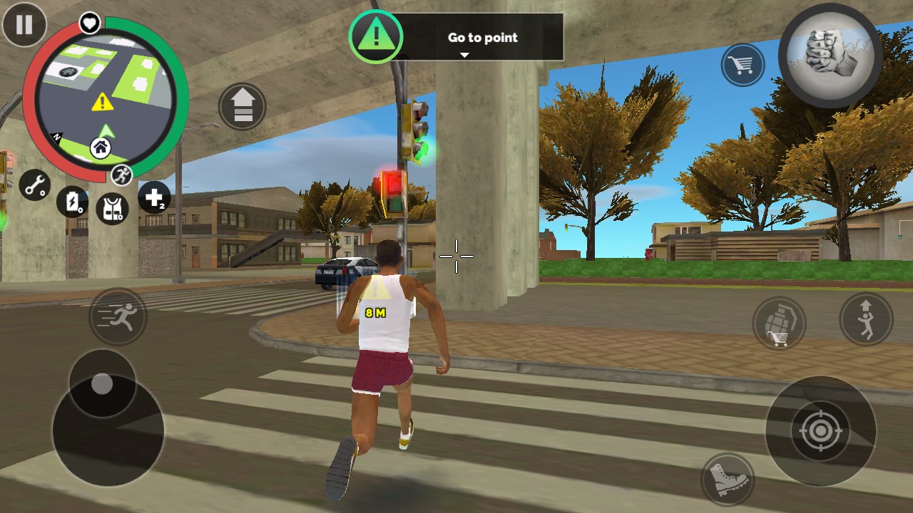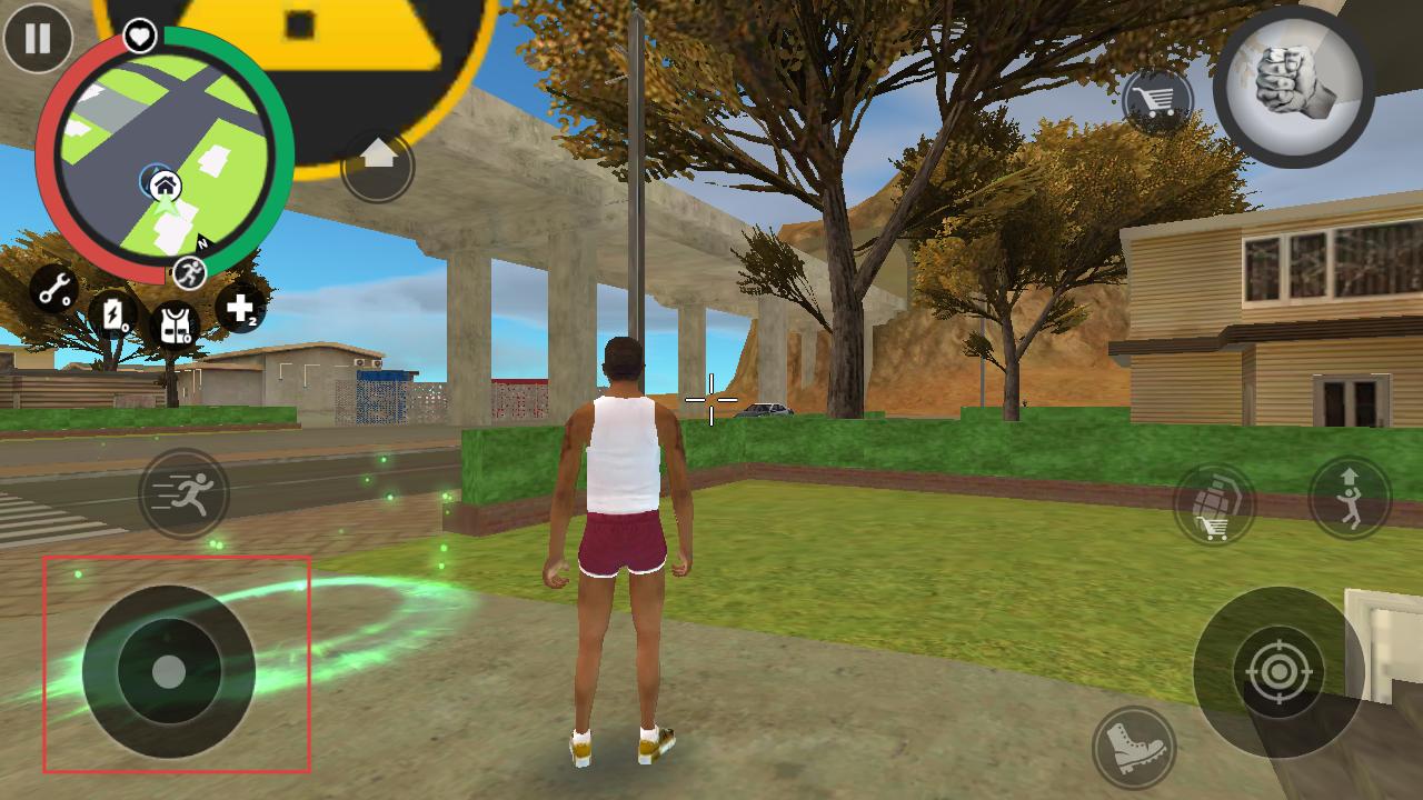 2、在城市场景中通过左侧虚拟摇杆控制角色移动,可在不同区域探索,寻找任务或目标。