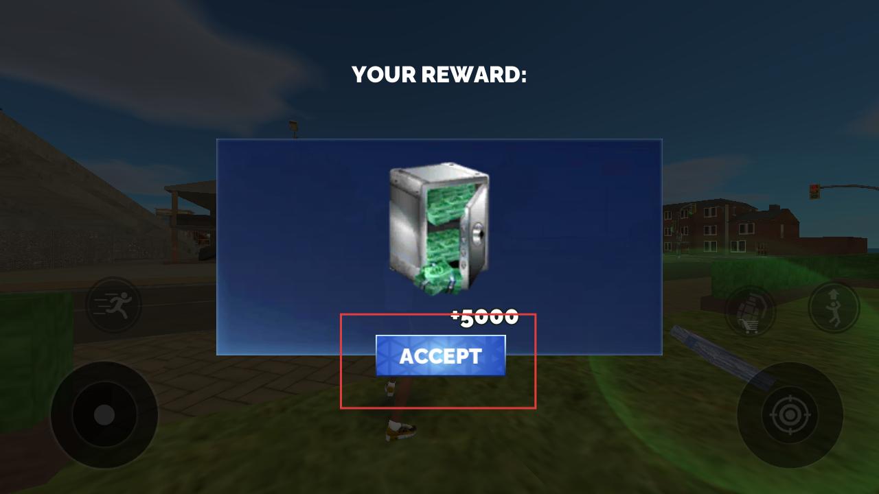 4、成功完成任务后,会弹出奖励界面,显示获得的奖励,点击ACCEPT,即可领取奖励,继续游戏。