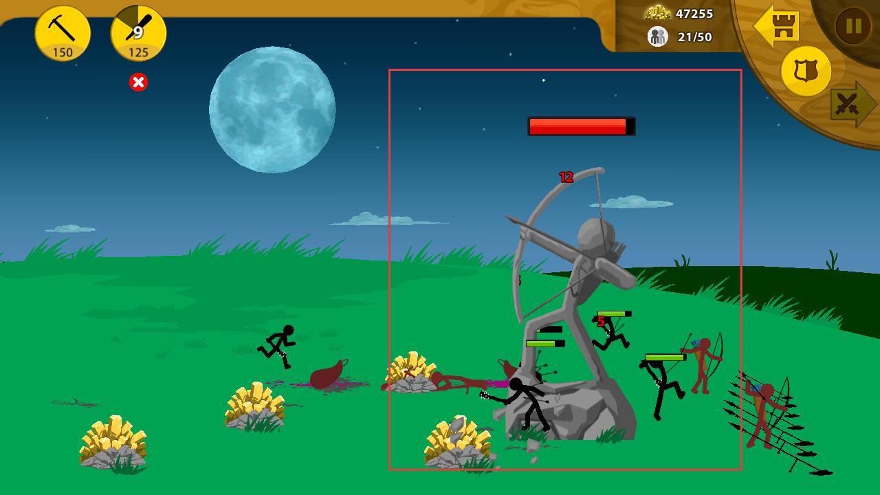 3、士兵们向敌方弓箭手雕像发起进攻,攻击雕像时需注意敌方士兵的反击,全力摧毁雕像以取得战斗胜利。