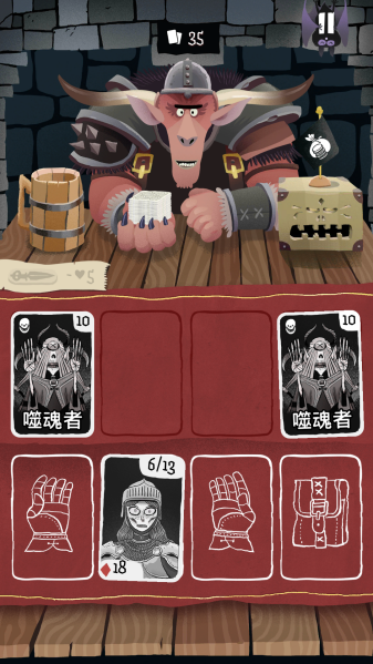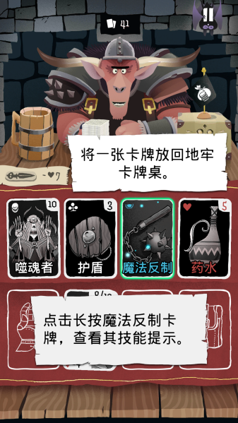 5、随机地牢生成:每局54张地牢卡牌随机组合,每次冒险的卡牌分布与挑战均不同。