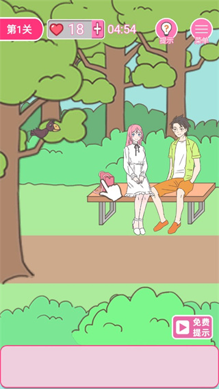 《拆散情侣 100 法》是一款诙谐解谜类手游,以策略整蛊、场景解谜为核心玩法。采用卡通画风,场景含公园、影院、餐厅、街头等日常场所,角色有情侣、服务员、路人等,道具涵盖气球、字条、玩具蛇、错单小票等整蛊物品。核心玩法为观察场景寻找道具,用对应策略打断情侣互动,解锁 “拆散” 方法与新关卡,搭配搞笑音效,兼具解谜趣味与诙谐氛围,适配休闲娱乐场景。