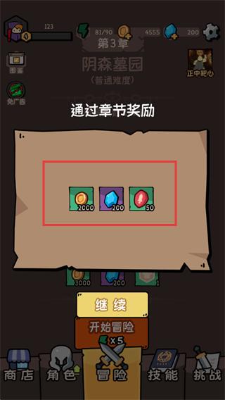 3、通过章节可获得金币、钻石、红宝石等奖励,这些资源可用于商店购物或技能解锁,助力后续冒险。