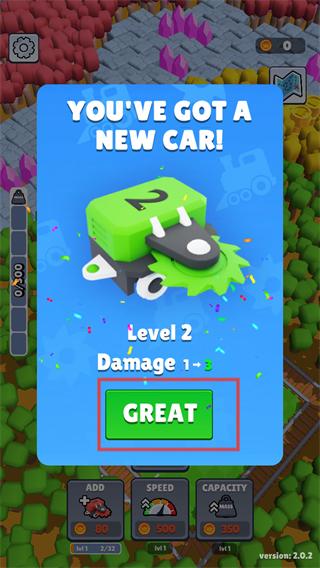 2、获得新的Level2火车车厢,点击GREAT领取,借助合并机制提升火车功能,为资源采集和铁路扩展做好准备。