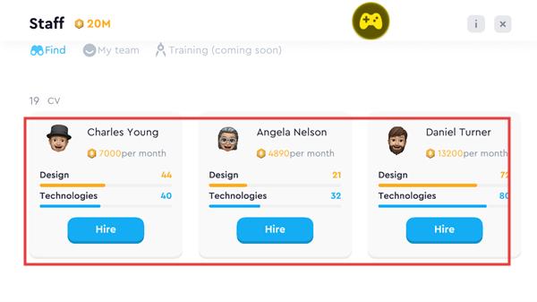 2、员工招募体系包含200+独特人才档案,技术专家与设计鬼才需合理搭配,不同性格特质的员工会带来研发效率与创意加成差异。