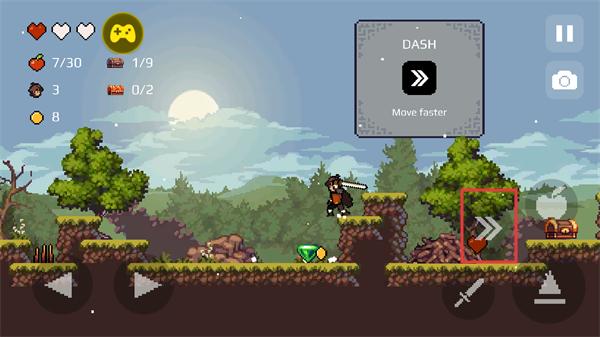 2、在关卡中可使用冲刺技能,快速移动穿越场景,灵活躲避机关陷阱,提升在森林、洞穴等不同场景中的移动效率。