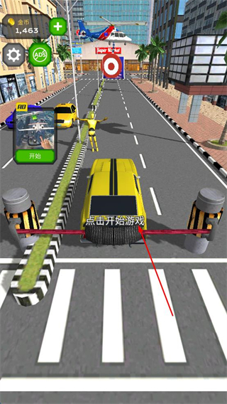 1、初始界面点击开始游戏,驾驶黄色汽车出发,利用金币可在赛前升级,为挑战做准备。