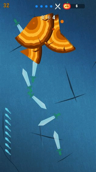3、投射完所有飞刀且无碰撞即可过关,收集苹果积累分数与解锁道具的资源,开启后续关卡。