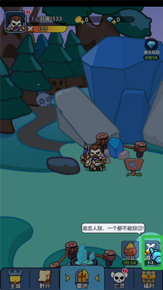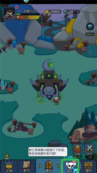 1、亡灵墓穴副本挑战,获取养成材料,离线前布局最优阵容提升挂机收益。