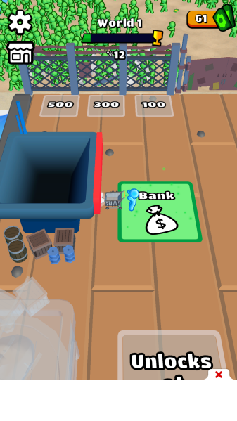 3、地图解锁有层次,积累资源存入银行解锁新场景,场景差异带来新鲜体验。