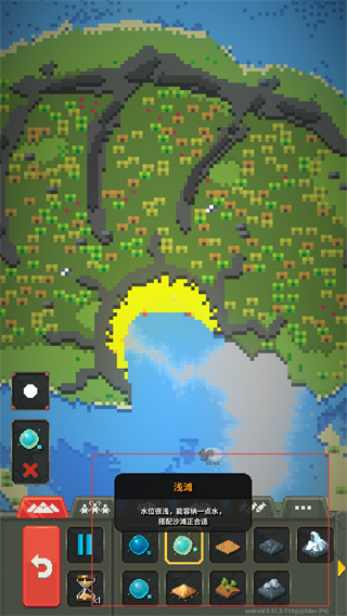 3、选择道具栏里的水道具,点击地图对应区域使用,让该区域生成水域,改变地形环境。