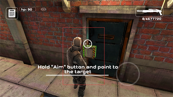 4、按住Aim按钮瞄准目标区域,将准星对准对应位置,完成瞄准操作以推进后续行动。