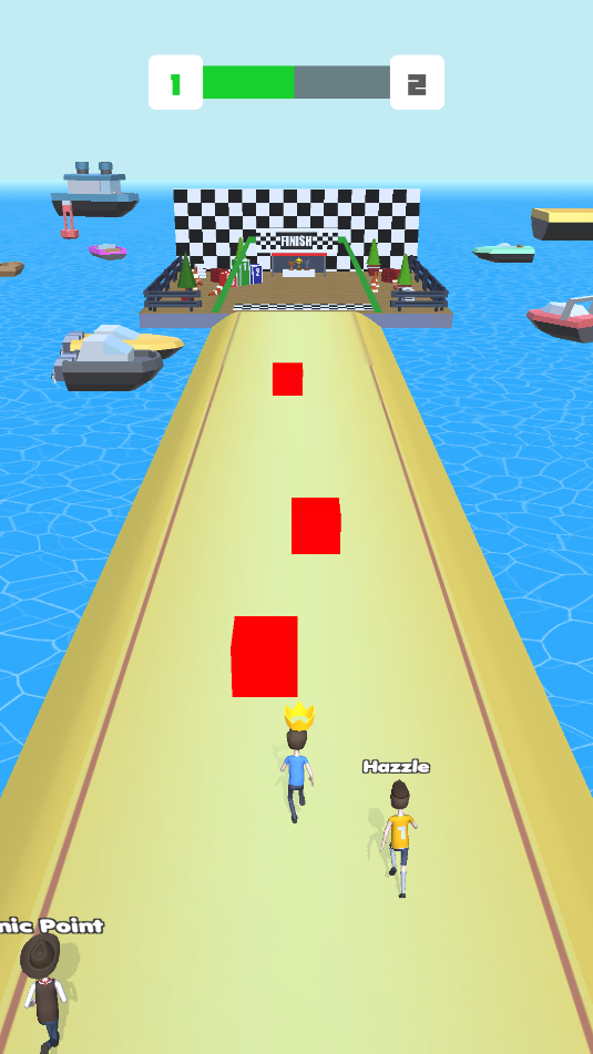 1、点击屏幕,所有的选手会向前奔跑,按住屏幕角色会暂停下来,松开则继续奔跑。