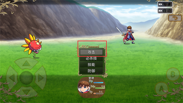 1、点击界面中的攻击选项,操控角色向敌方发动普通攻击,触发战斗交互,推进对战流程。