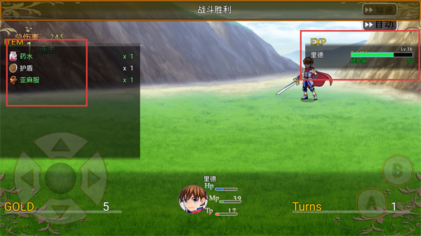 4、战斗胜利后,角色会获得EXP提升等级,同时能得到药水、护盾等道具奖励以及对应的金币。