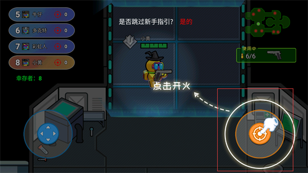 3、点击右侧的开火按钮,使用枪械攻击目标,每次射击会消耗弹药,逐步推进战斗进程。