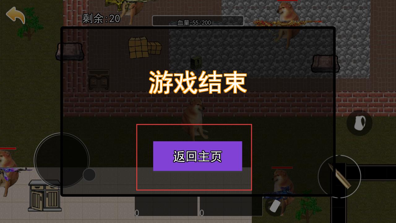 3、若战斗失败,会出现游戏结束提示,此时可点击返回主页,回到游戏初始界面。