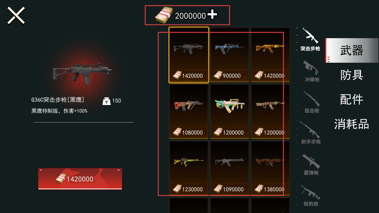 4、在武器界面,可使用获得的钱,购买不同的武器,为后续的地铁逃生射击做准备。