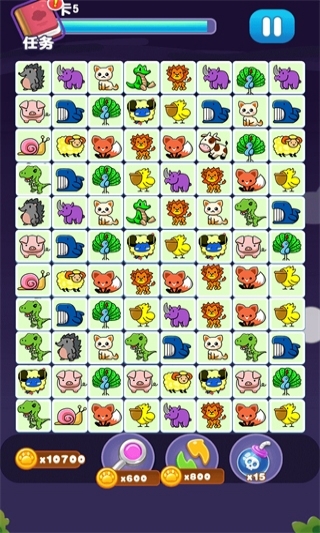 1、消除规则核心,点击两个相同宠物图案,连线转折不超过两次且无阻碍即可消除,五个以上同图案相连触发全屏消除特效,快速提升分数。