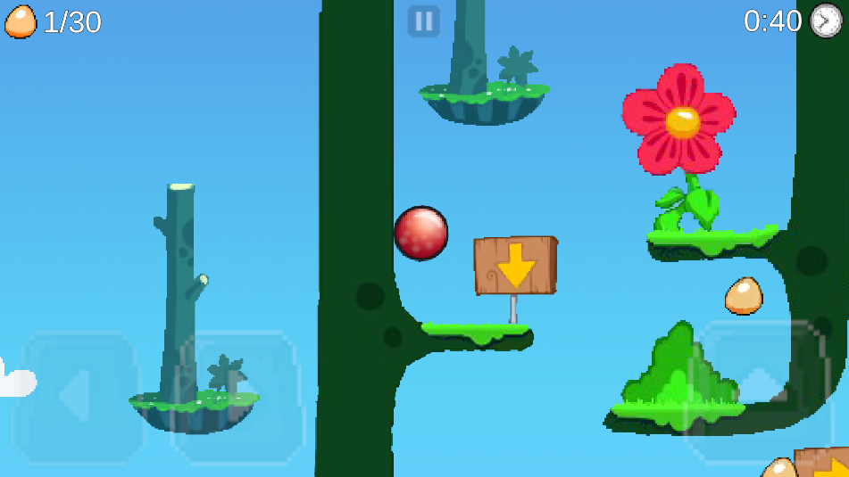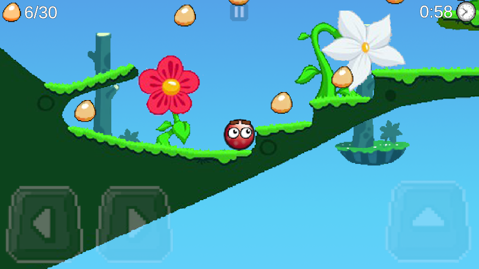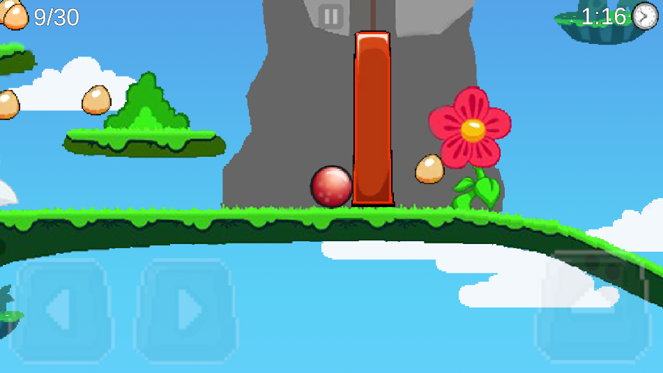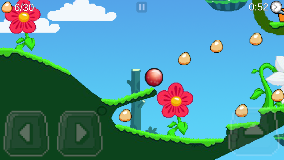 3、游戏中,点击左下角的按钮控制小球滚动,右边的按钮点击可以跳跃,收集途中的蛋,收集30个即可通关。