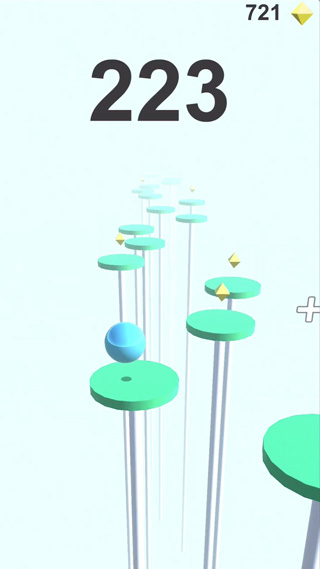2、手指触摸屏幕控制小球,跟随背景音乐节奏调整跳跃频率,确保小球平稳落在目标色彩板上,避免掉落。