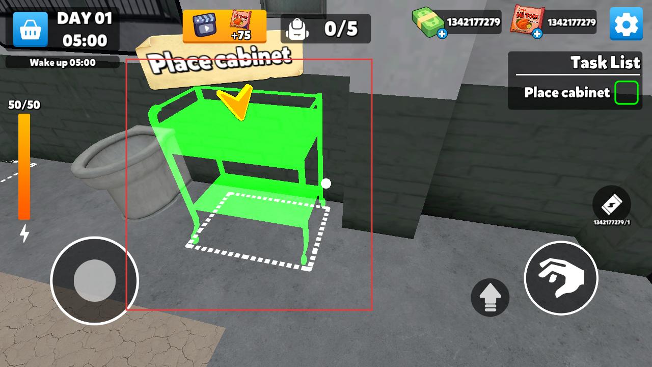 2、依照任务提示,操控角色将柜子放置到相应位置,完成任务列表中的Place cabinet任务。