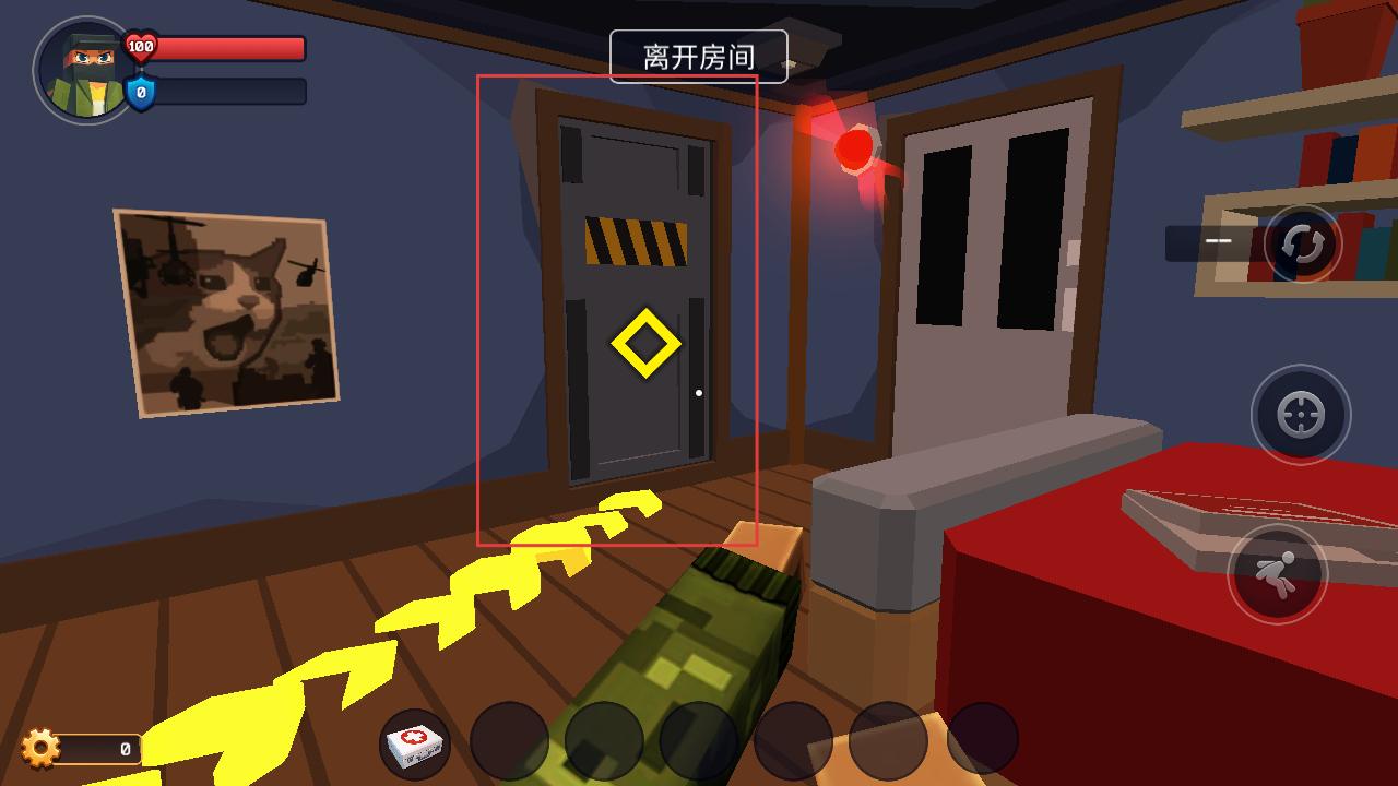 2、在房间内看到带有警示标识的门,需要离开房间时可朝此门移动,继续探索新的场景。