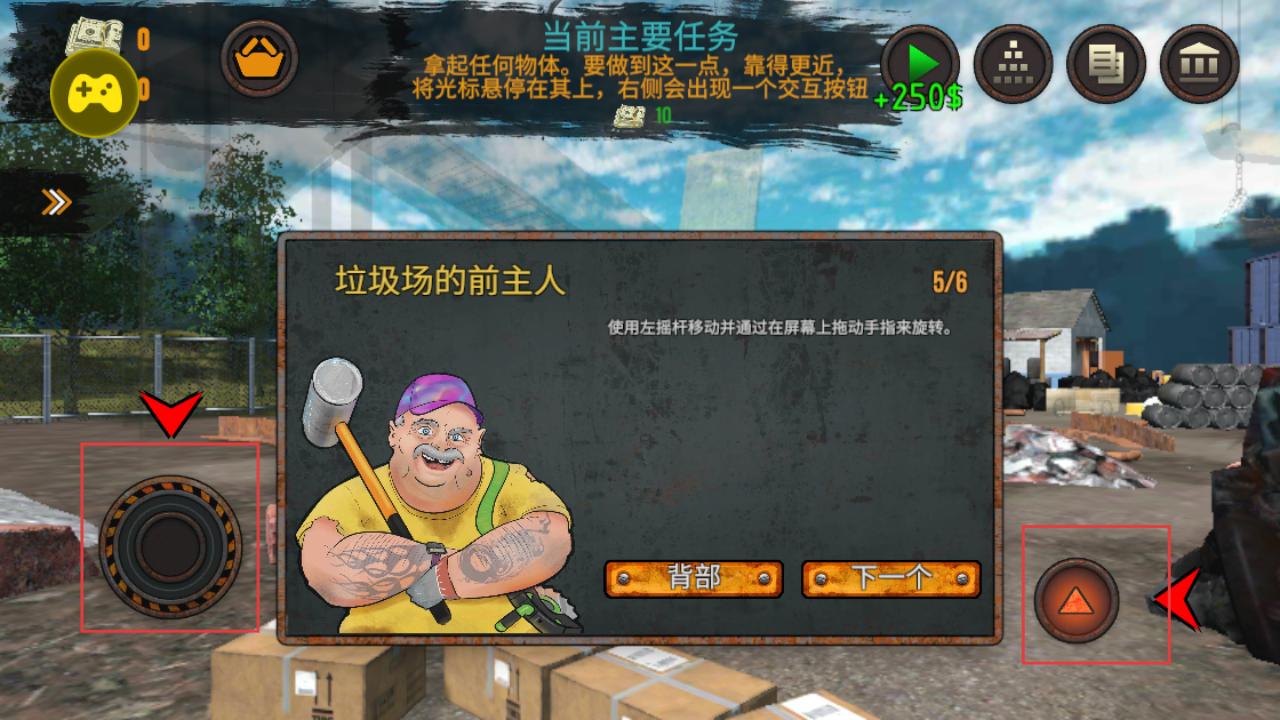 2、使用左摇杆移动并拖动屏幕旋转,熟悉操作方式,为在垃圾场中收集废品、开展经营活动做好准备。